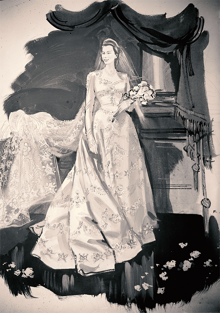 25. Princess Elizabeth’s wedding dress was designed by the Sir Norman Hartnell, who submitted designs for the dress. The winning design was approved mid-August, which was less than three months before the wedding.